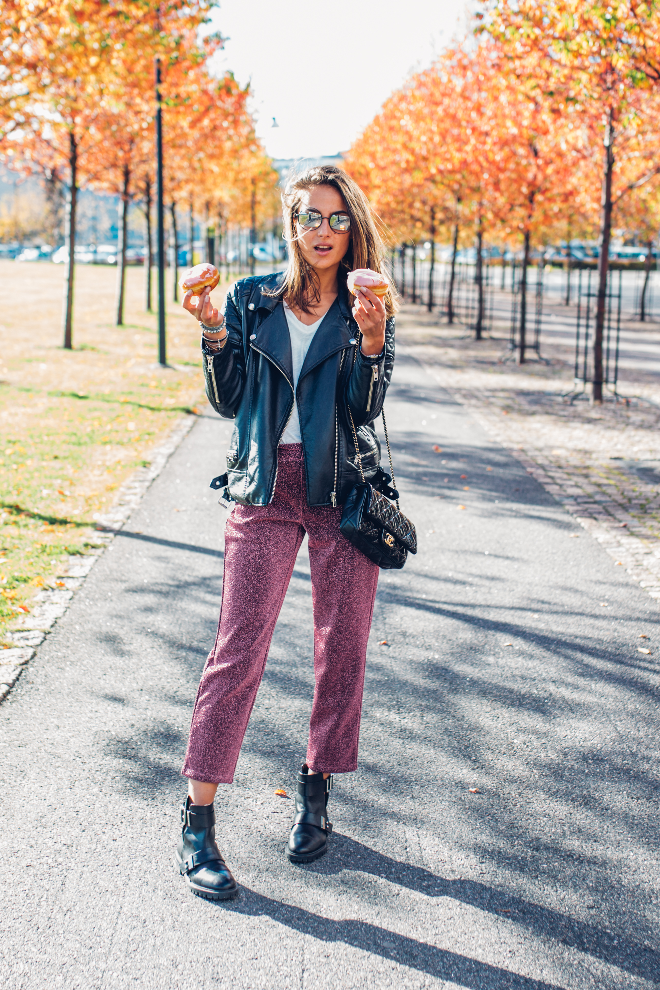 Disco pantsit tulevat myyntiin 6 lokakuuta Lindexin myymälöihin. Berliinimunkit olivat liian makeat mun makuun, vaikka ne väkisellä halusinkin näihin kuviin. Ei tarvitse taas seuraavaan 10 vuoteen syödä niitä 😉